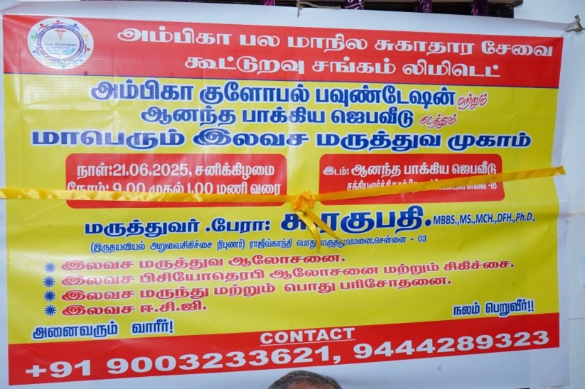 Ambika Global Foundation, in collaboration with Ambika Multi State Health Services For The Weaker Section Co-Operative Society Ltd, conducted a Free Medical Camp on 21st June 2025 at Blessed Hope Prayer House.